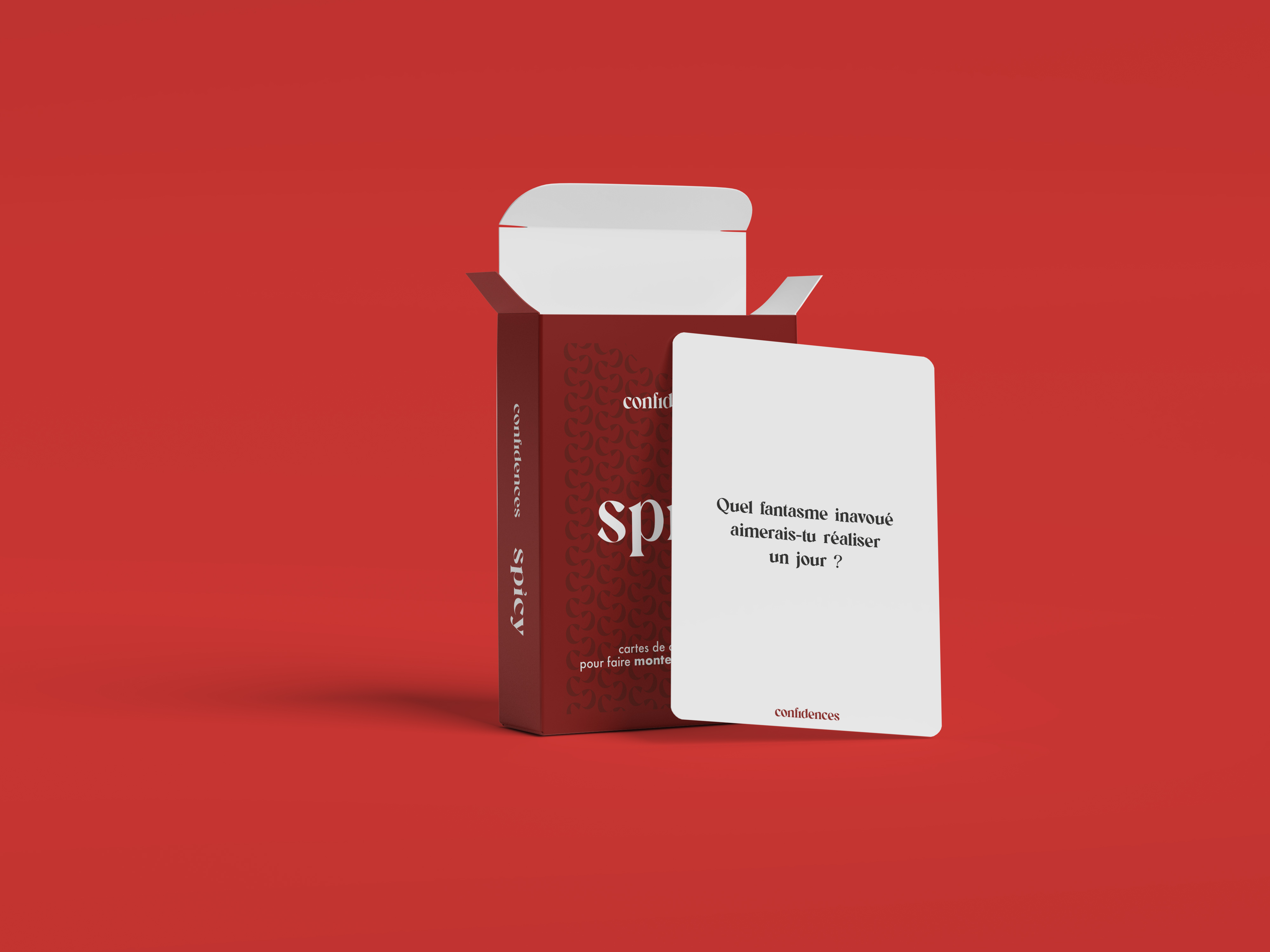 Prêts à faire monter la température ? Spicy est une invitation à flirter en s’amusant. Ce jeu de cartes épicé contient 90 questions tantôt taquines, tantôt audacieuses, parfaites pour provoquer des sous-entendus malicieux et dévoiler petit à petit vos désirs. Que ce soit pour briser la glace avec une nouvelle rencontre ou pour raviver la flamme d’une relation naissante, Spicy crée rapidement une atmosphère de complicité et de séduction. Les cartes encouragent les compliments osés, les confidences coquines et les regards brûlants, tout en laissant chacun fixer ses limites dans le respect et la bonne humeur. Car Spicy libère les non-dits, titille la curiosité, fait rosir les joues, accélère les battements de cœur… et pourrait bien allumer la flamme entre vous.